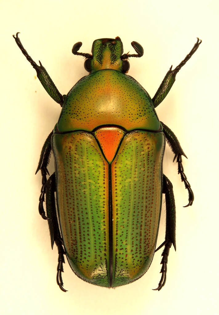 E' un bellissimo Cetoniide abbastanza diffuso in terraristica, ne esiste anche una varietà(o forse una sottospecie  ) che invece di verde è viola con riflessi turchese