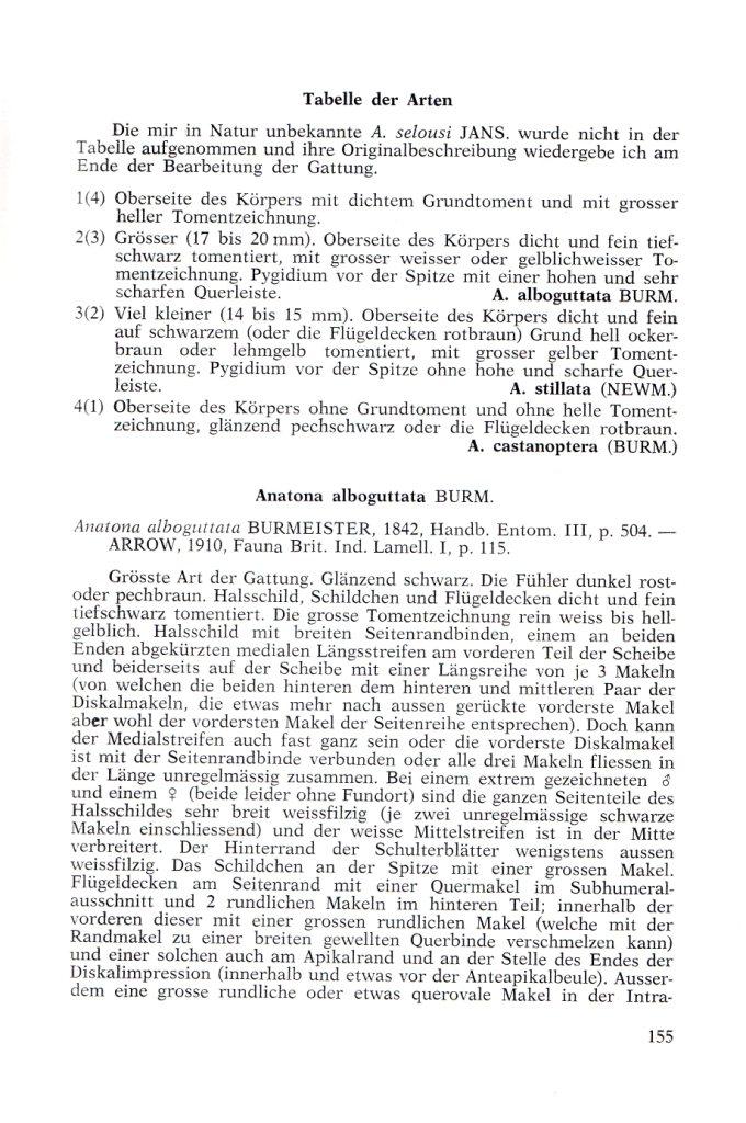 - oberseite des Körpers mit dichtem Grundtoment und mit grosser heller Tomentzeichnung... alboguttata + stillata - oberseite des Körpers ohne Grundtoment und ohne helle Toment zeichnung, glanzend pechschwartz oder die Elytrae rotbraun... castanoptera