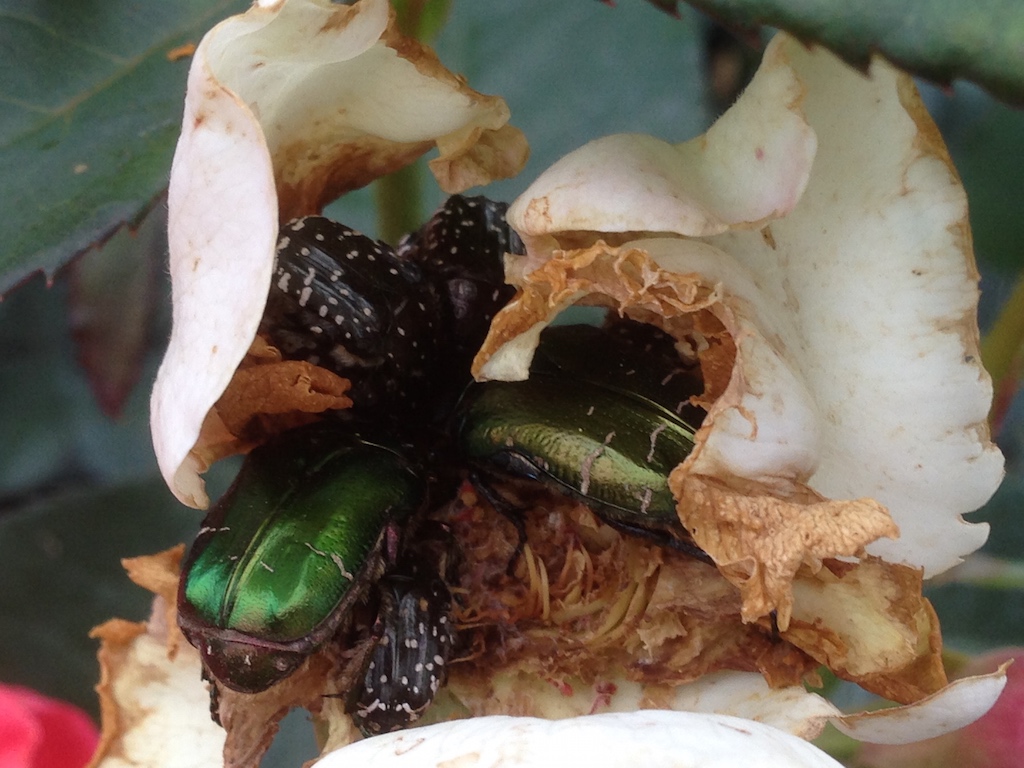 Buon giorno, ho visto questo bel gruppo in foto, a parte il "maggiolino" che dovrebbe esser Cetonia, volevo capire cosa sono gli altri compagni di "merenda", Li ho trovati su tutte le rose presenti in un giardino..... un'infestazione su un centinaio di piante...... rodono tutti i fiori cominciando già appena il bocciolo inizia ad aprirsi. Dimensione circa 1 cm abbondante.