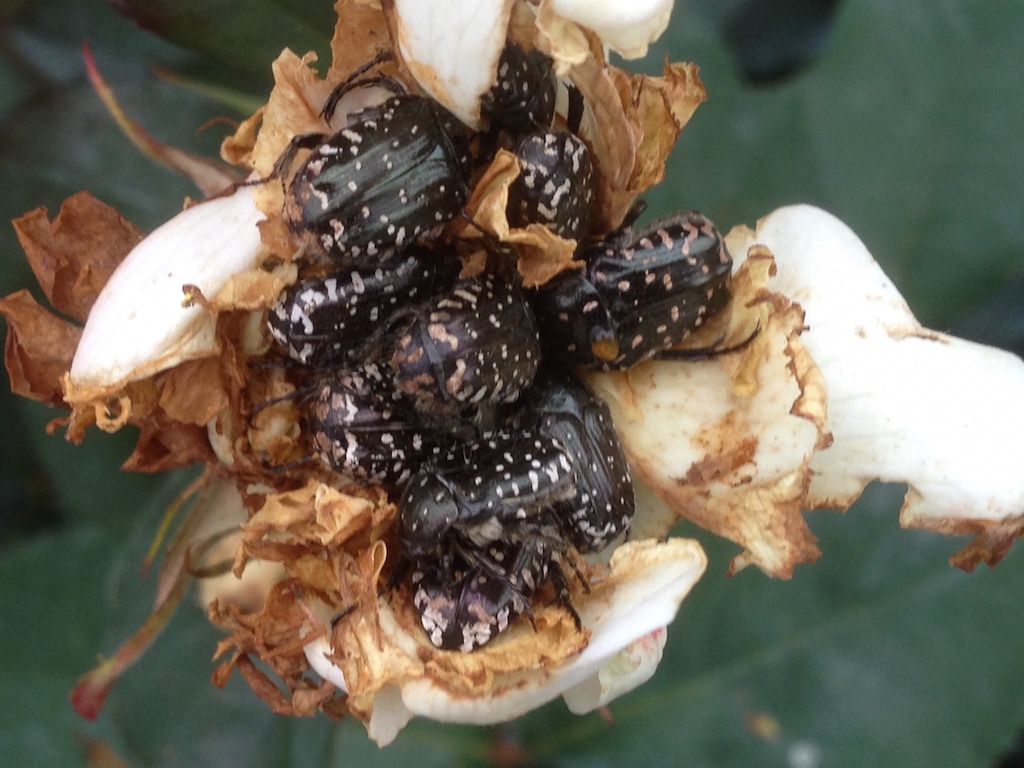 Se non sbaglio Oxythyrea funesta dopo aver devastato l'ovario del fiore depone le uova al suolo e le larve si pappano le radici?