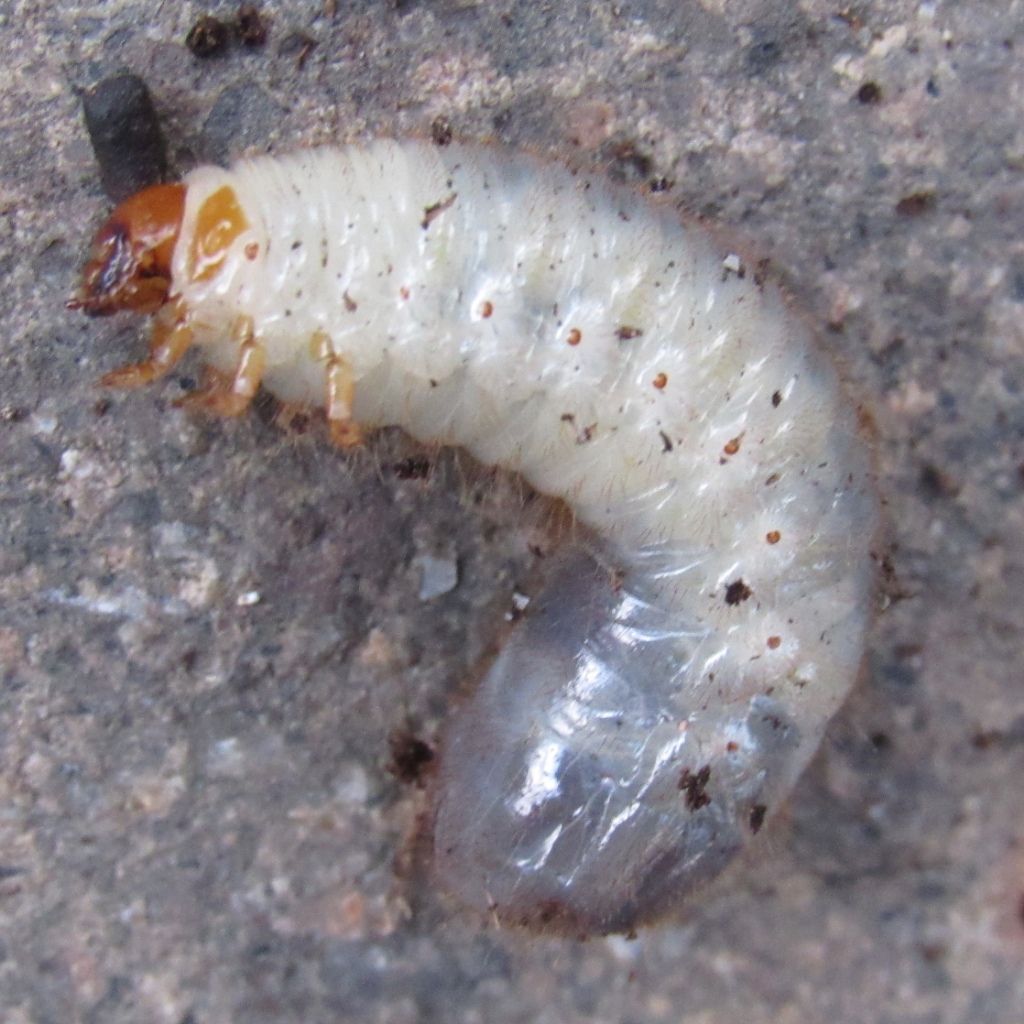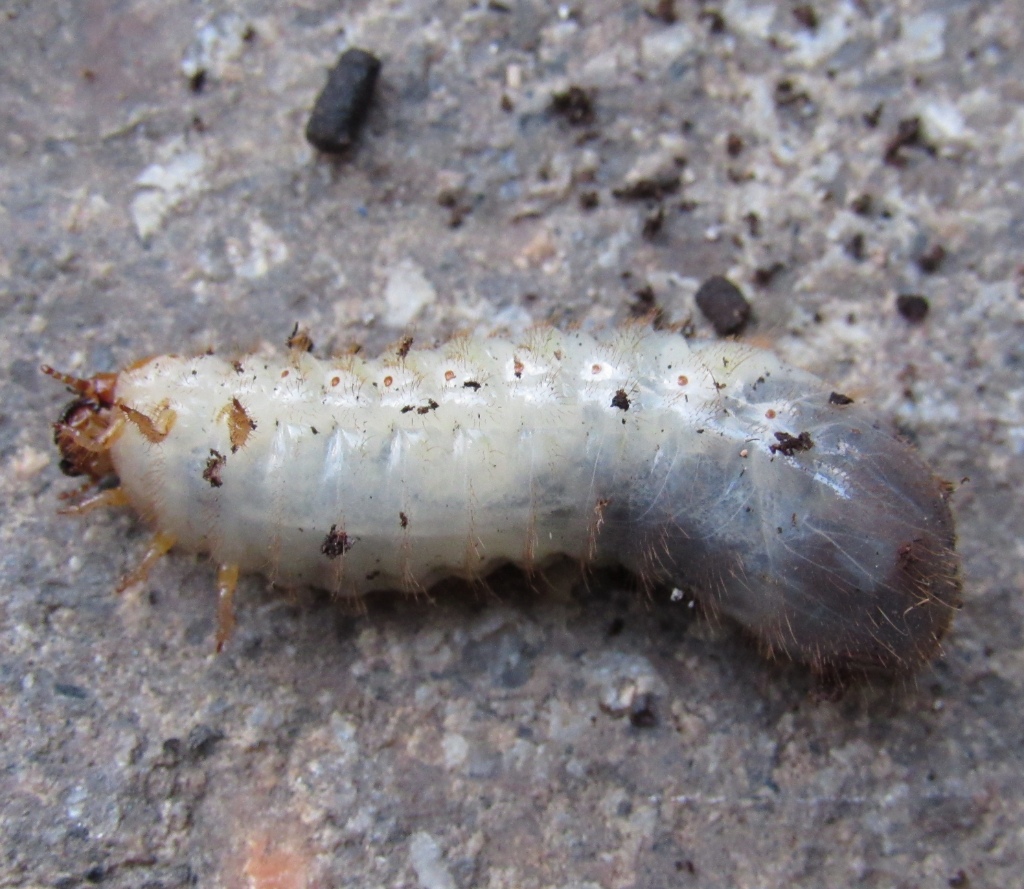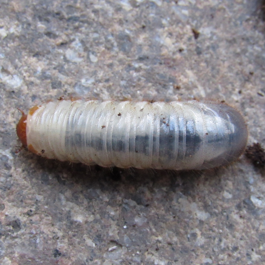 ho trovato nella terra di un vaso tre larve come questa. Lunghezza circa 3cm, largezza circa 1cm. Vorrei sapere di cosa si tratta. Ho scattato le foto della larva vista dal sopra e dal sotto e di fianco.