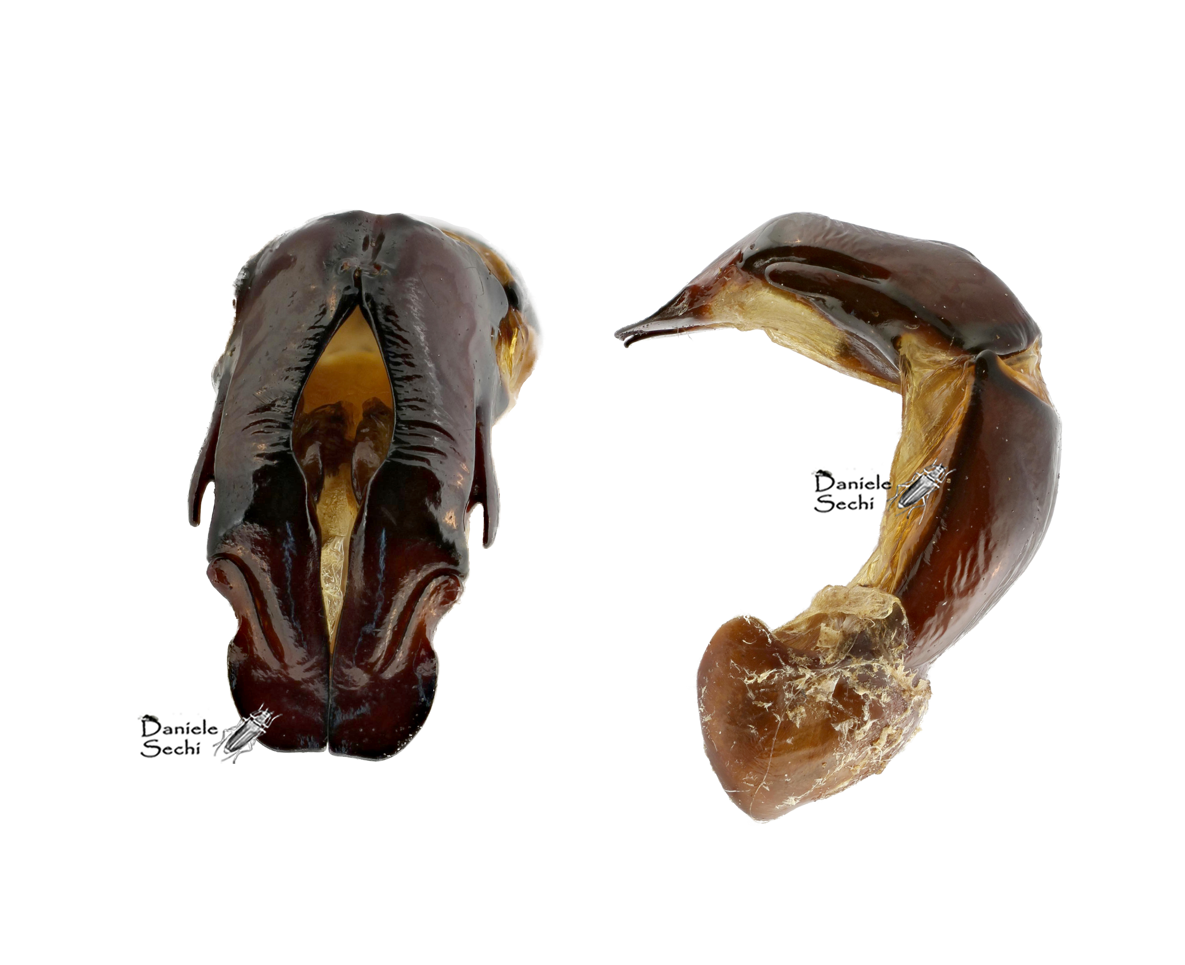 Una bellissima fotografia di un Trichiino interessante. Vorrei studiare meglio la particolare forma dei parameri, che hanno un particolare uncino a metà del bordo esterno. Potresti inviarmi la foto senza lo sfondo colorato? Enrico Ricchiardi |