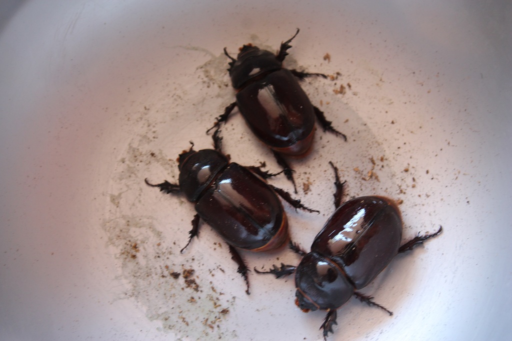 L'allevamento, volenti o nolenti, altera quasi sempre i tempi di sviluppo delle larve. A me sono appena sfarfallati (in assoluto ritardo visto che da me gli Oryctes compaiono ai primi di luglio ed ad agosto già non se ne vedono più) almeno 3 Oryctes da uova deposte in cattività nel luglio 2011. Quindi innanzitutto ci hanno meso solo 13 mesi a completare lo sviluppo, e poi sono usciti in un momento che in natura vede i loro simili praticamente tutti già morti!
