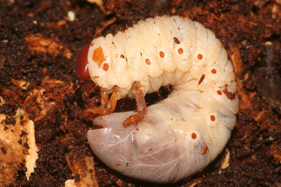 Oryctes (Oryctes) nasicornis grypus (Illiger, 1803) - Dynastidae - larva, maschio e femmina