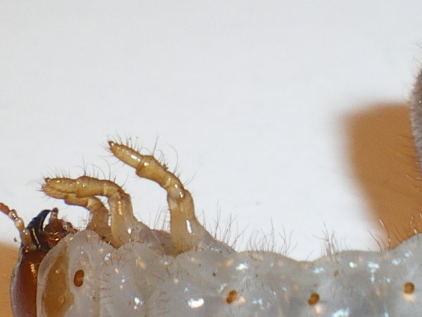 Osservandola moooolto più attentamente sono riuscito a notare delle differenze, dal punto di vista morfologico visto che da quello comportamentale a quanto pare sia identico a quello dei Cetoniidi. Le antenne sono inizialmente spesse, come quelle di quest'ultimi, poi mano a mano che la larva cresce evidentemente tendono ad assottigliarsi (non è il caso dei Cetoniidi e neppure quello delle Anoxie), il raster chiaramente non è presente e gli ultimi segmenti addominali sono un pò più definiti.