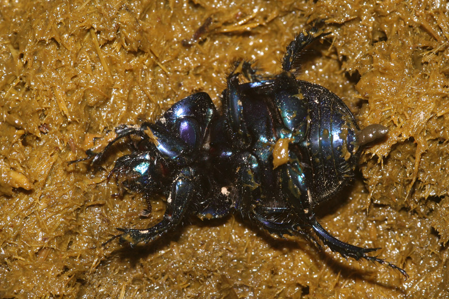 Quest'altro scarabeidae credo invece sia un Geotrupes-credo-spiniger (sono assai simili i Geotrupes, ma il colore azzurro intenso del ventre mi sembra indicativo)...