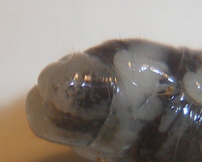 La pupa non ho avuto il coraggio di fotografarla per non fare danni... :oops: ma ecco l'adulto che deve finire di sclerificare, sopra i resti della celletta. :D