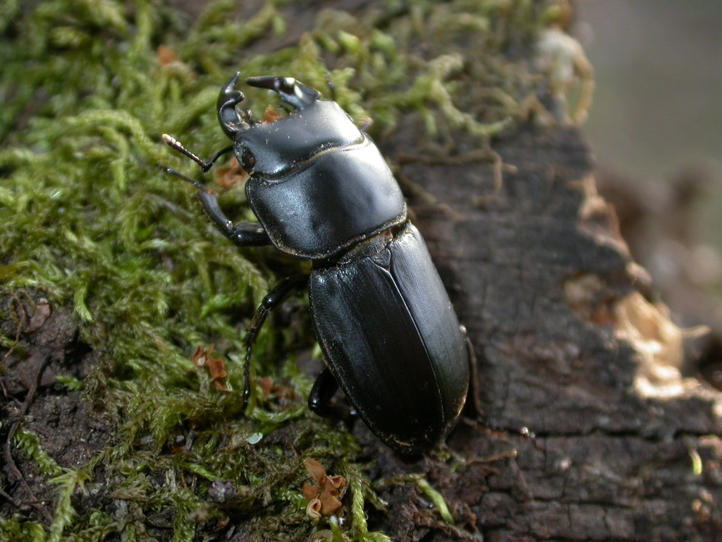 Una specie sempre bella, il Dorcus musimon: ne ho trovato diverse coppie su un vecchio tronco di leccio e su uno di sughera caduto al suolo; quando è 'al punto giusto' se ne possono trovare anche alcune decine. Una femmina (il pronoto è lesionato):