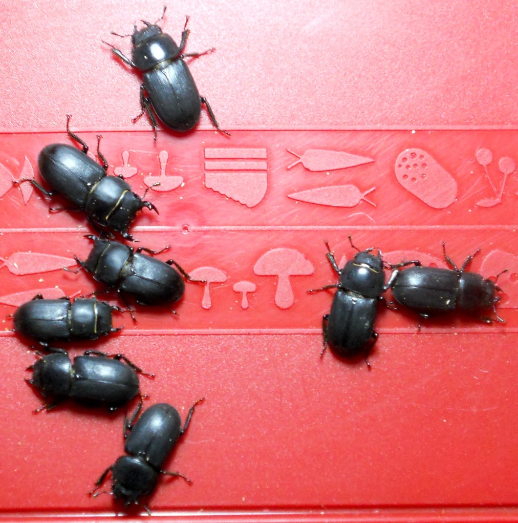 Ciao a tutti! Ho trovato questi tre bellissimi Lucanidi in un ceppo di un grosso albero, ormai spezzato e caduto..penso si tratti di un maschio e due femmine di Dorcus parallelipipedus..potete confermare?? Nella terza foto l'esemplare presenta due puntini sulla testa, si tratta sempre della stessa specie?? Siccome vorrei tenerli..come potrei fare per fornirgli da mangiare e creargli un ambiente??