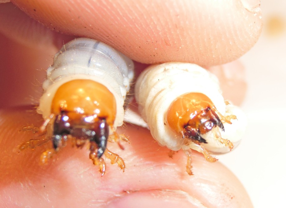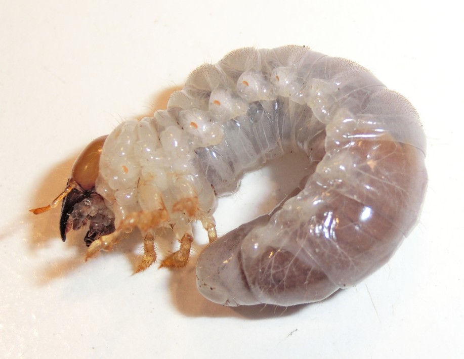 Per miglior raffronto ho utilizzato una larva matura di Dorcus presa nello stesso posto (e nello stesso giorno) in un ontano morto che fungeva da colonia di Dorcus (ci saranno state 100 larve costrette a vivere nelle loro feci perché il legno era pressoché finito!!!)