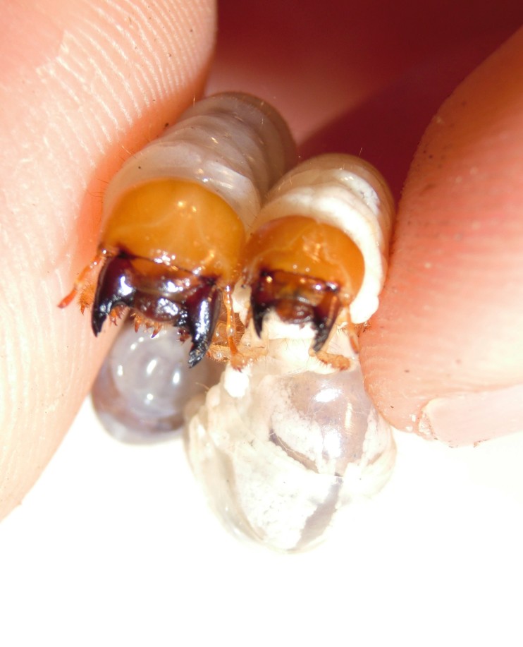 Per miglior raffronto ho utilizzato una larva matura di Dorcus presa nello stesso posto (e nello stesso giorno) in un ontano morto che fungeva da colonia di Dorcus (ci saranno state 100 larve costrette a vivere nelle loro feci perché il legno era pressoché finito!!!)