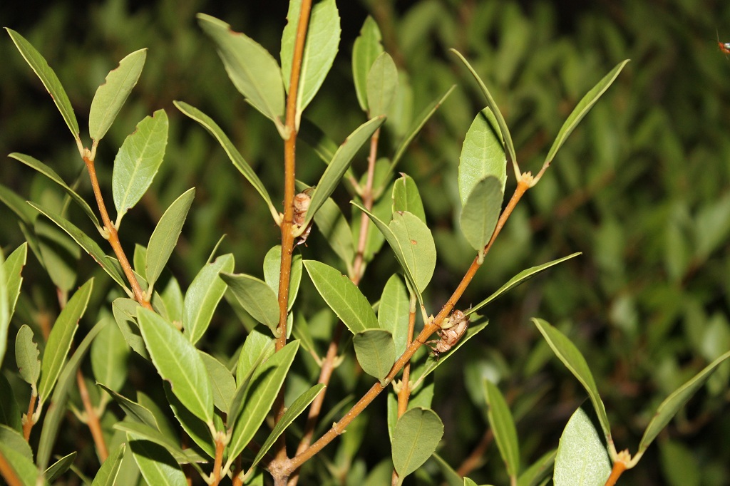 Poi, ovviamente, mi metto a prenderne qualcuno. Prima inizio a spostarmi da una pianta all'altra, ma è più il tempo che perdo che altro, la maggior parte è irraggiungibile ) col retino corto e col manico che si svita) e la luce cala sempre più. Allora mi fermo di fronte ad una pianta promettente, quella della foto con quei tre, e aspetto. Ogni pochi secondi ne arriva uno. Forse è rimasto l'odore della femmina. Tutto dura 10-15 minuti, tra gli attacchi volanti dei pipistrelli e dei succiacapre, poi, poco prima che faccia buio del tutto, non se ne vede più uno. Devono essere tutti sulle piante. tanto vale che me ne vada a cena pure io.