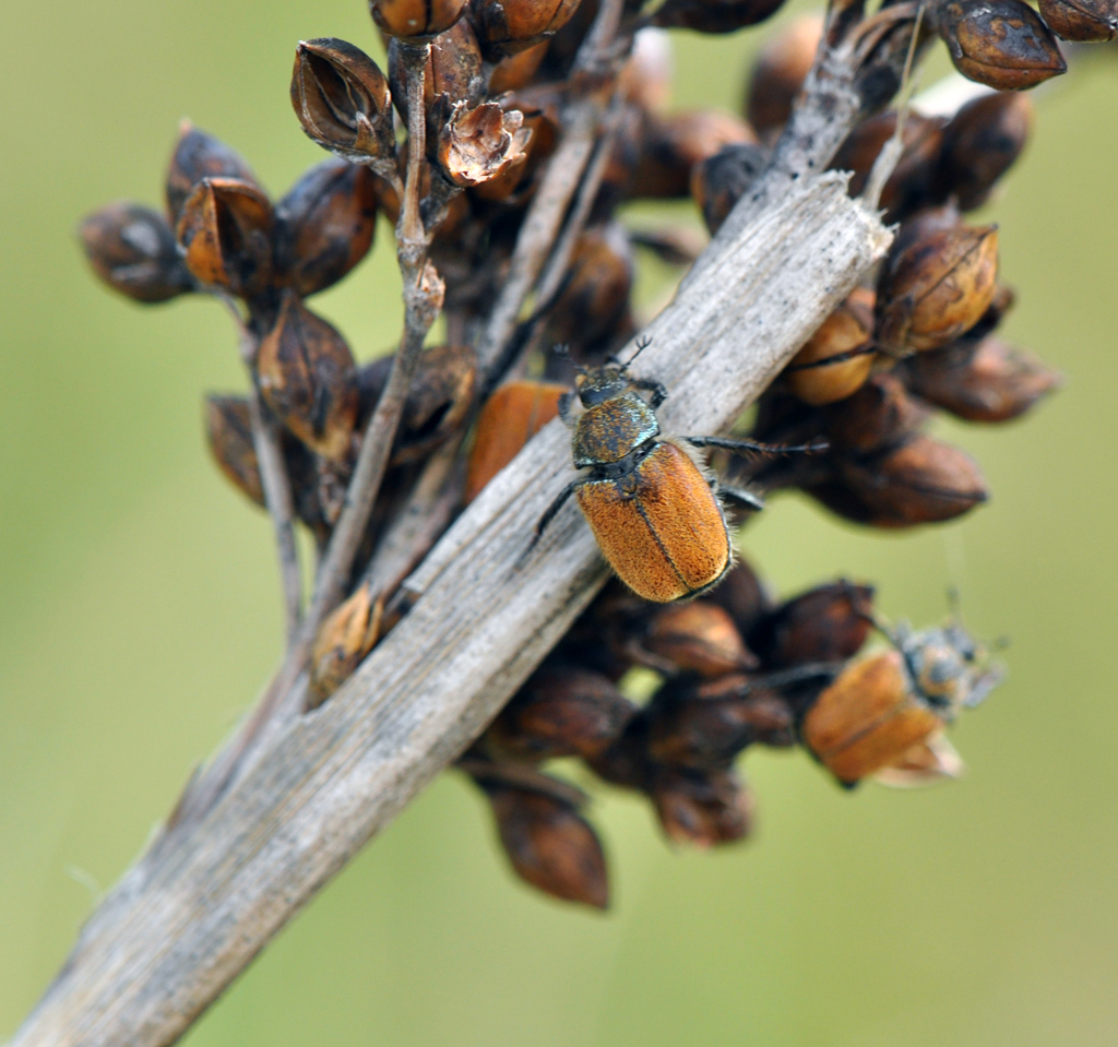 Maurizio Bollino ha scritto: Stamattina sono tornato sul posto per fare un paio di foto del biotopo e vedere cosa c'era. La prima cosa che ho notato è che di Hoplia se ne vedevano pochissime, sia sugli steli d'erba che sui fiori di Tamarix; sui fiori di Juncus addirittura nessuna! Che si siano spostate? Grazie Maurizio per le foto esplicative. Nello stesso tipo di ambiente, in alcune località della Sardegna occidentale, si raccoglie la Hemichaetoplia pallidipennis (Gyllenhal, 1817) (anch'essa localizzatissima). Non credo che le Hoplia si siano spostate: ho notato che hanno la tendenza a stare sempre negli stessi metri quadrati; anche a distanza di anni, trovi sempre le discendenze negli stessi punti. Forse la giornata, con cielo velato, non era delle più adatte; oppure sono già in diminuzione (durano pochi giorni).  Ciao Piero