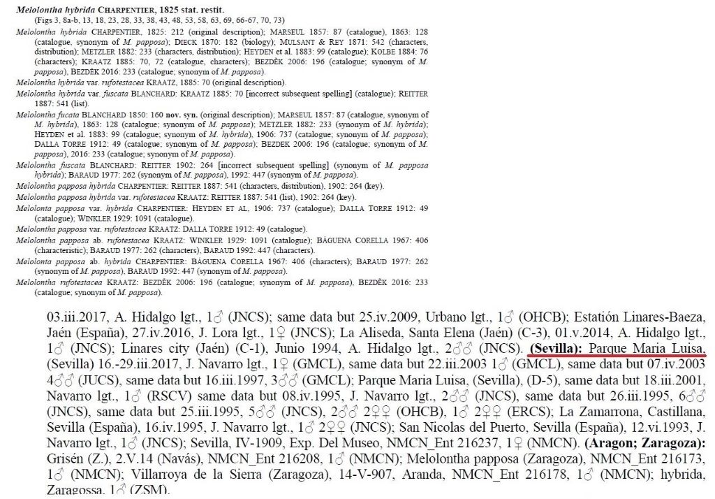 riporto a galla questa discussione in quanto, secondo gli ultimi lavori sulle Melolontha iberiche, la specie oggetto della discussione potrebbe non essere M.papposa Illiger, 1803 ma M.hybrida Charpentier, 1825.