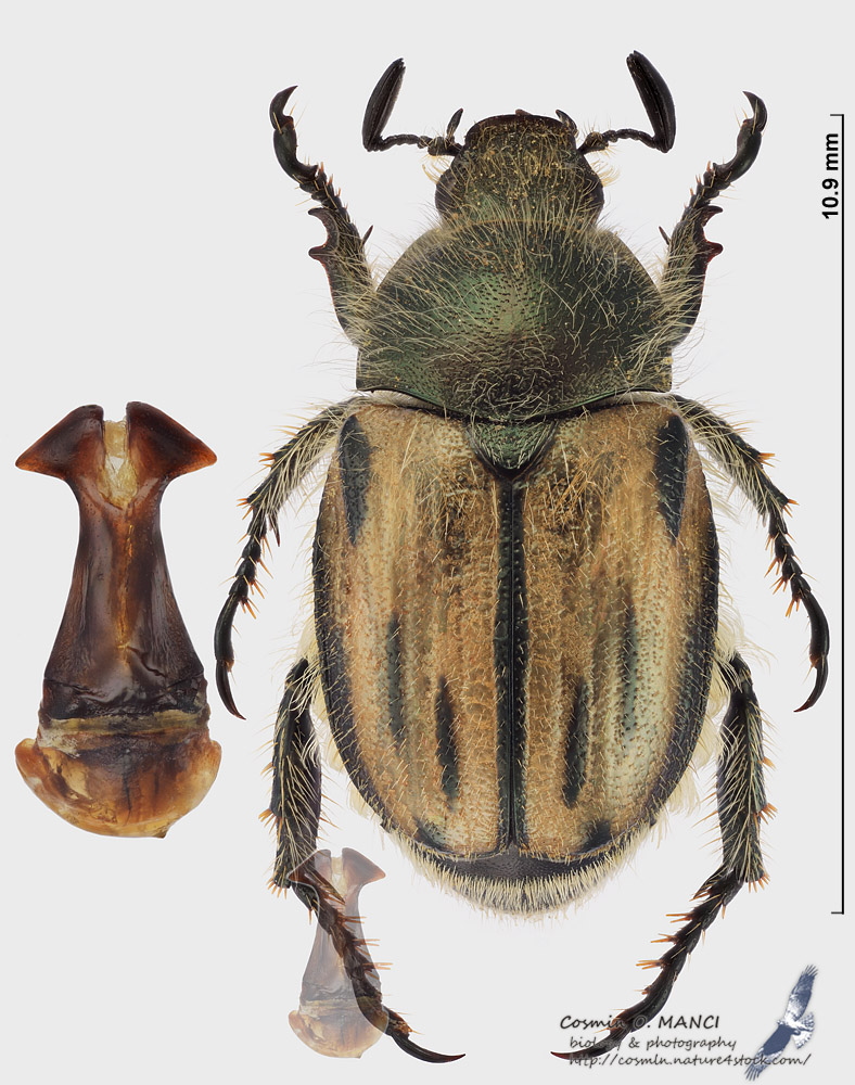 Ciao, Ieri quando ho preparato questo maschio di Chalcophorella (Chalcophorella) stigmatica ho preparato anche esemplari di Blitopertha e quando ho estrato... una sorpresa... non era la solita B.lineolata. Maschio e genitalia di Blitopertha nigripennis (Reitter, 1888)... e foto in natura con questa specie. Una foto piu grande qui. |