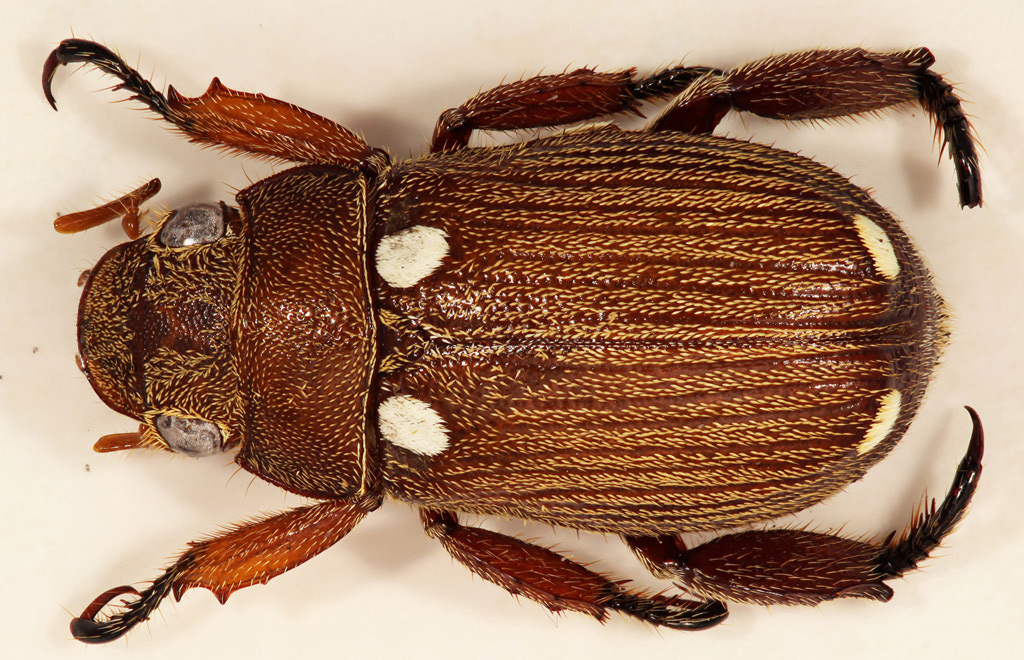 Grazie al suggerimento di Alberto Ballerio arrivo al genere Adoretus. Ho trovato in rete qualche lavoro sugli Adoretus afrotropicali, ma non ho trovato traccia di specie con quelle quattro vistose macchie bianche. Suggerimenti da qualche specialista?
