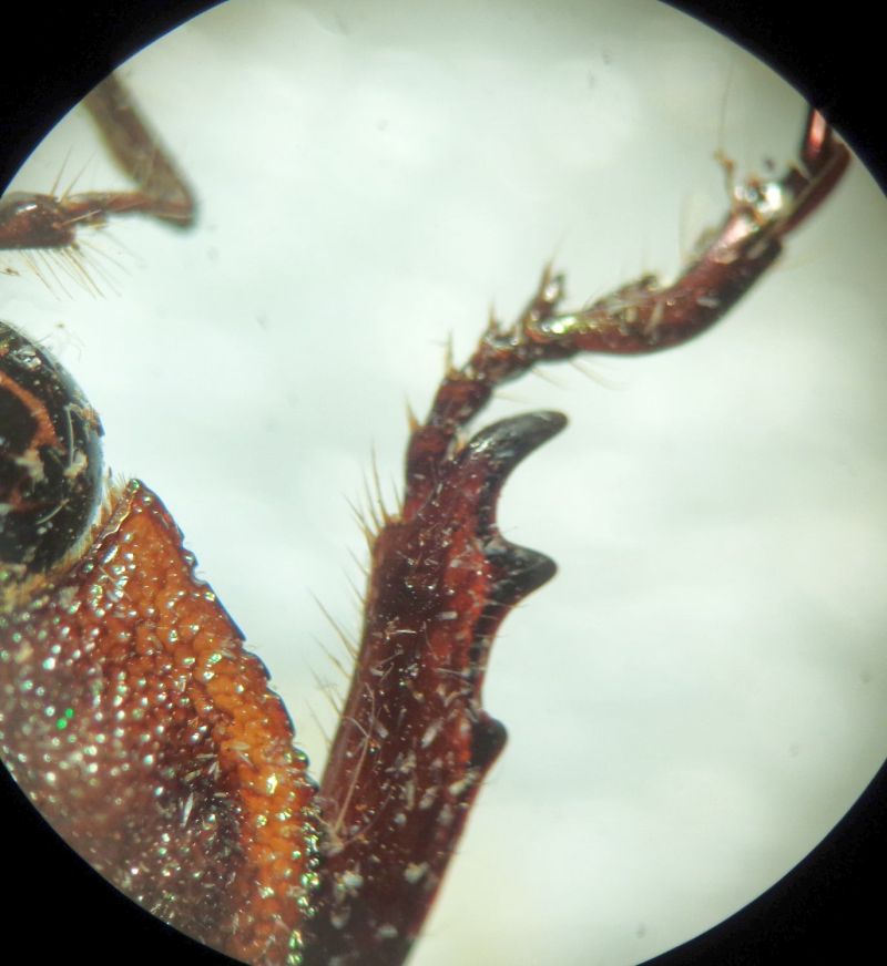 L'ho cercata nel Forum, mi sembrava di averla postata ma non l'ho trovata. Maschio di mm 27; è ben caratterizzato nel genere per assenza di modificazioni alle protibie, colore e per: