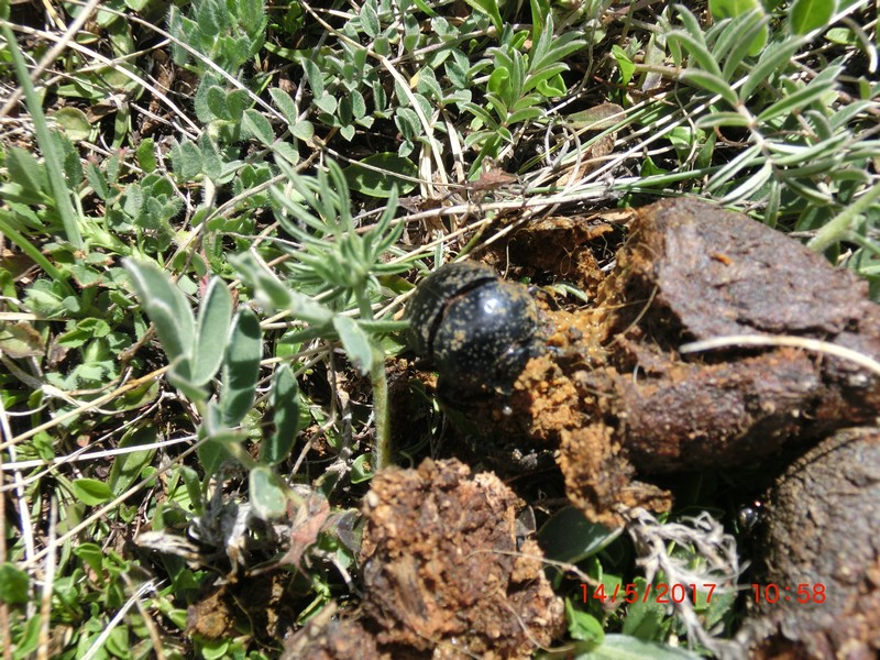 Quanto volevo incontrare questa meraviglia!!! E finalmente ci sono riuscito, anche se ci sono dovuto arrivare in Abruzzo... Con la scusa di portare la fidanzata a vedere Rocca Calascio (L'Aquila), ne ho approfittato per cercare coprofagi! Ne ho incontrati addirittura 13 esemplari  (più altri resti) su sterco ovino di un gregge, passato da poco, che avevo adocchiato dalla cima della rocca. Il primo esemplare osservato -quello delle foto- era su sterco di cane, in una zona non adibita a pascolo. Tutti erano intenti a modellare le caratteristiche palline. Gli esemplari li sto tutti provando ad allevare... speriamo bene... Curioso un esemplare di 12mm!  Ciao