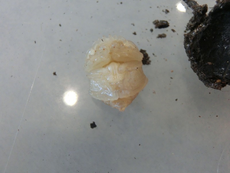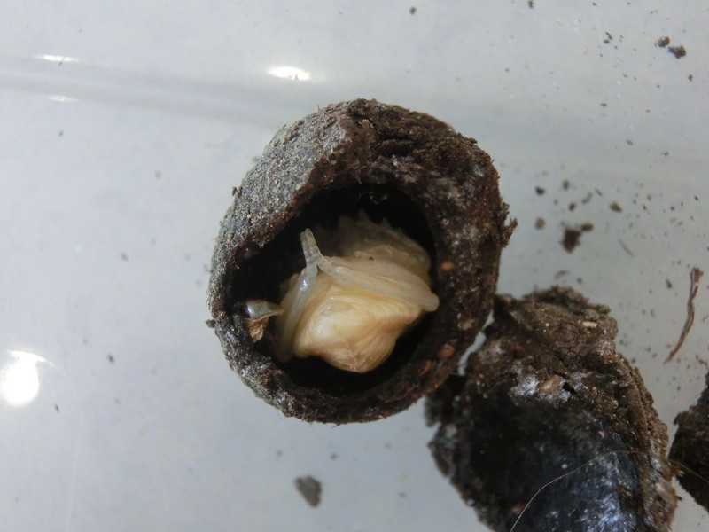 Ecco le prime sorprese. Ho una dozzina di "ovetti" e oggi, 29.VII.2017, mi sono azzardato a romperne uno, il più piccolo, tra gli ultimi ad essere modellato. Agitandolo sentivo la pupa che sbatteva contro le pareti, e... Aggiungo che gli adulti sono quasi tutti vivi ma non vengono più in superficie. Una sorta di estivazione. Al contrario la coppia di S. semipunctatus è morta. Ciao