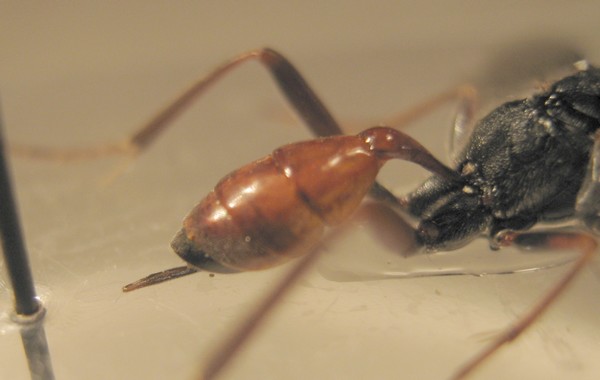 PS: sul fatto di spillare gli Ichneumonidi, è una questione di praticità. Se lo incolli come un coleottero, poi la forma delle mandibibole, i palpi o la carena posteriore del mesopluro come li vedi ? Al massimo, per evitare lo spillo, e non rovinare la punteggiatura del mesoscuto o i notauli, si può incollare su cartellino triangolare... (cosa che, almeno a me personalmente, richiede però più tempo)