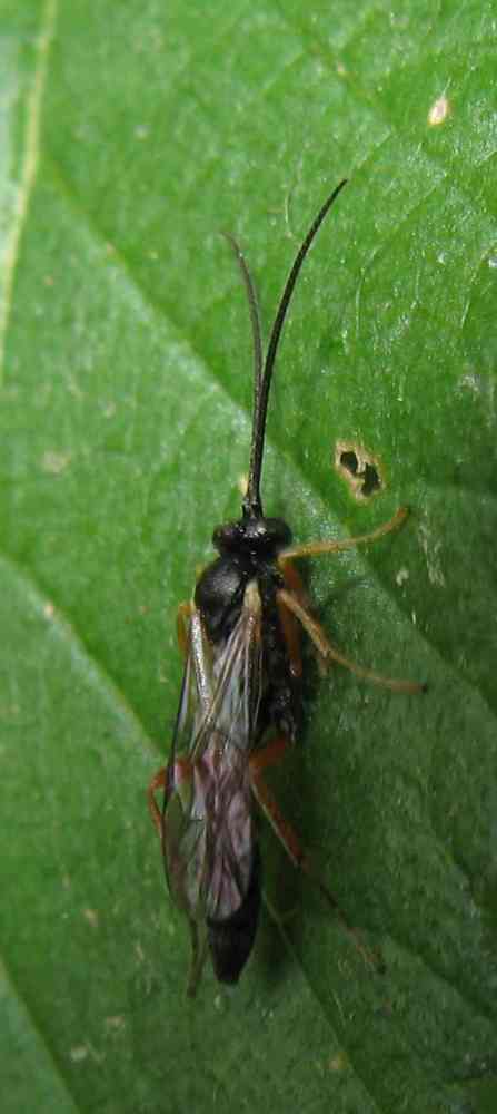 E' un Icneumonide. Non si vede benissimo e non mi spingo a determinarlo senza poterlo vedere meglio.