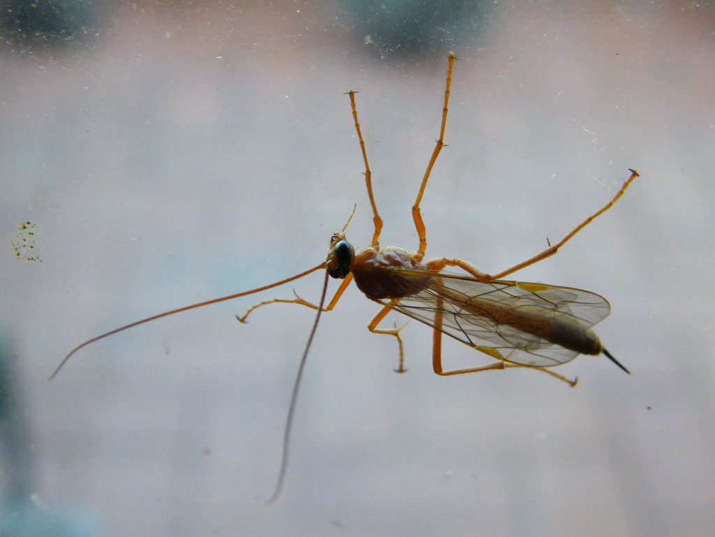 Questo era rimasto "intrappolato" all'interno della vetrata della villetta. L'ho preso e messo sotto liquido nel caso qualcuno lo desideri in studio. Misura circa 20 mm. Di chi si tratta? Ichneumonide? Grazie a tutti.