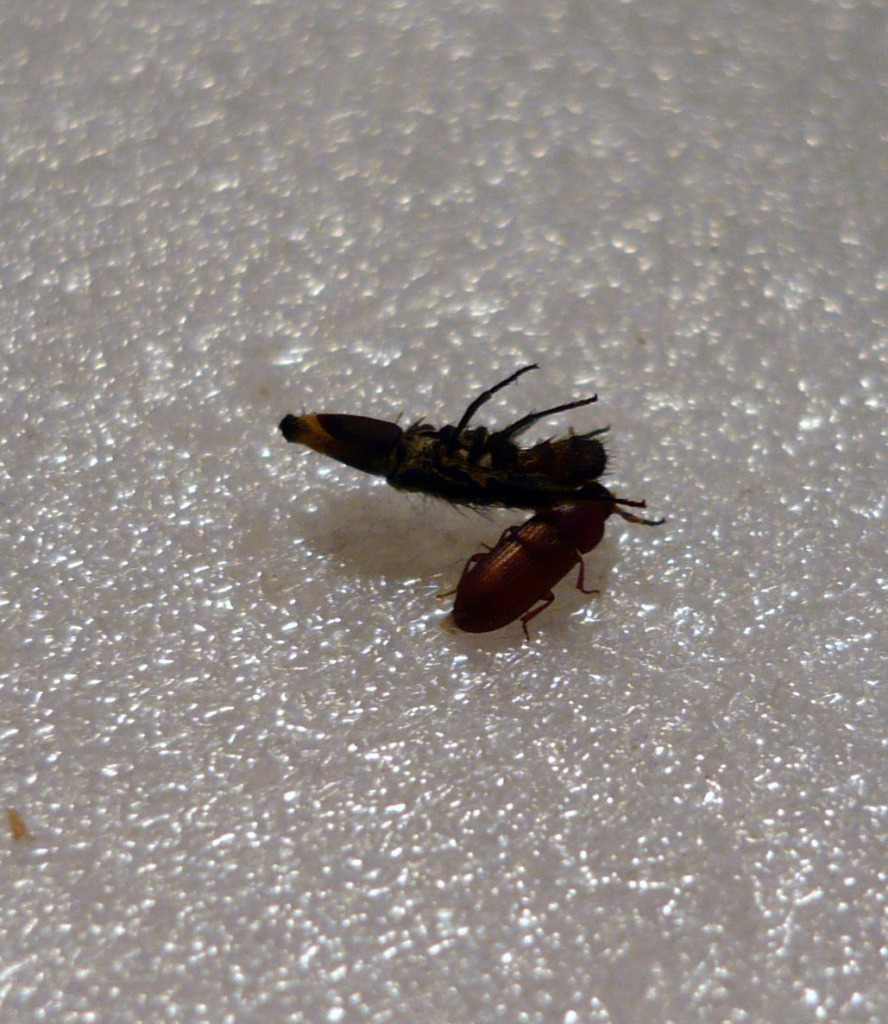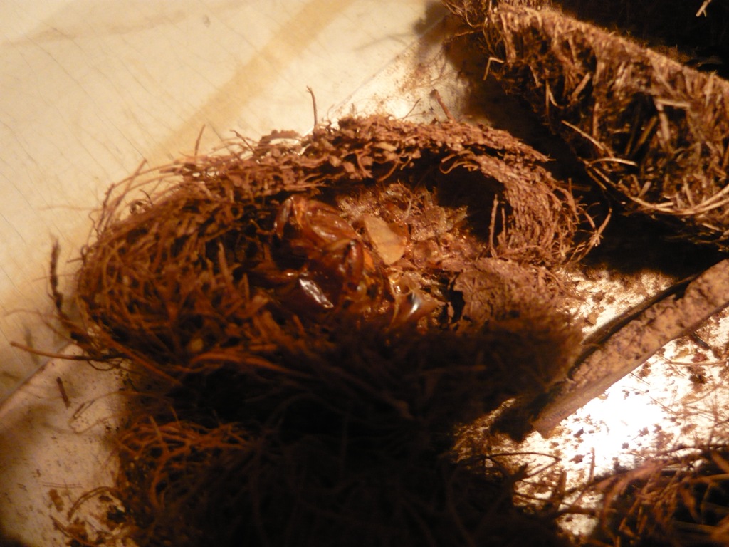 Ho scoperto tutto il clan che si era inserito in un "tentativo di diorama" fatto con delle cellette pupali di Rynchophorus. Inutile dire che mi hanno disfatto completamente una pupa secca,ma perfetta, e una larva che però non era un granchè.