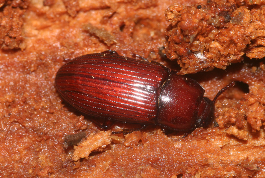 Stamattina in vecchio ceppo marcio di Pinus ho trovato un'allegra colonia di questo sfavillante tenebrionide. Uloma culinaris?