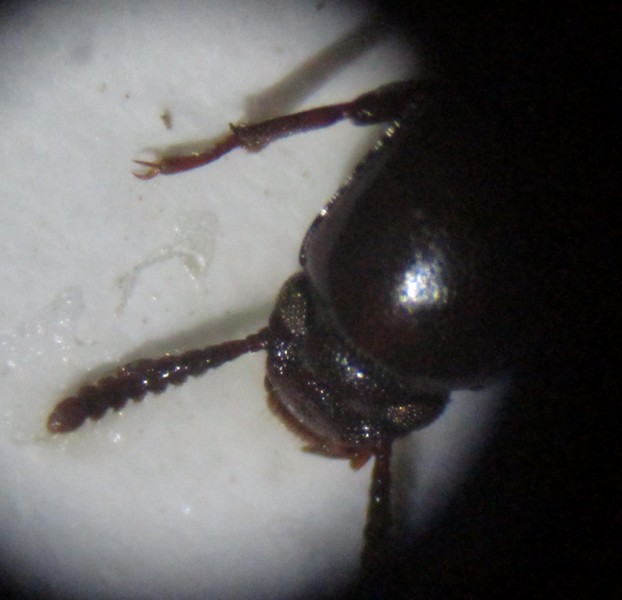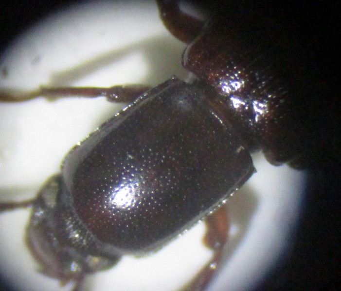 Corticeus unicolor. C. pini is stouter with distinctly shorter pronotum: