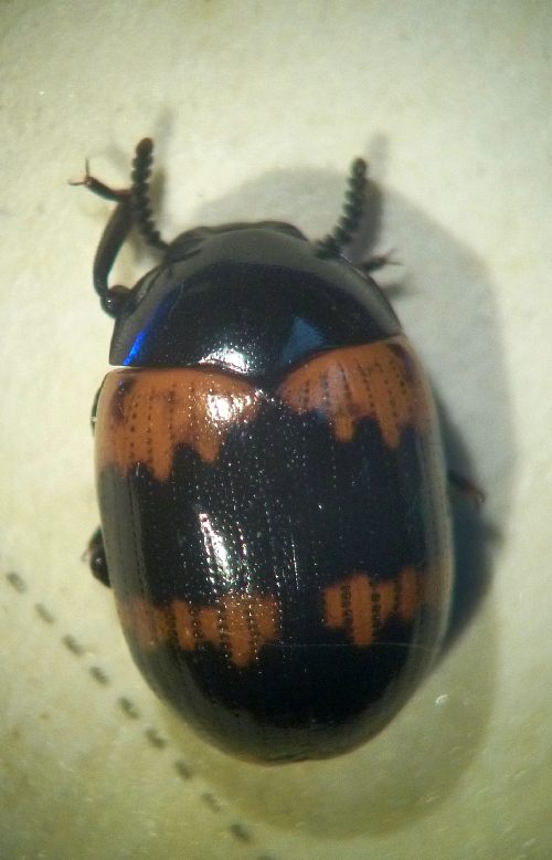 Purtroppo mi si è spenta la digitale dopo questa foto, ne avrei fatto un'altra per far notare altre due macchie arancio sulla zona posteriore delle elitre, in questa non visibili.