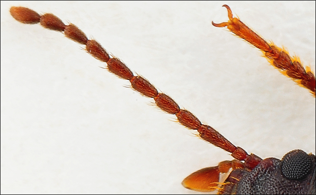 Potresti fare la foto degli articoli mediani delle antenne (se ricordo bene dal 3° al 7°) per mostrare un carattere tipico dei maschi di questa specie? Si tratta di una serie di lunghe e blande setole supplementari.