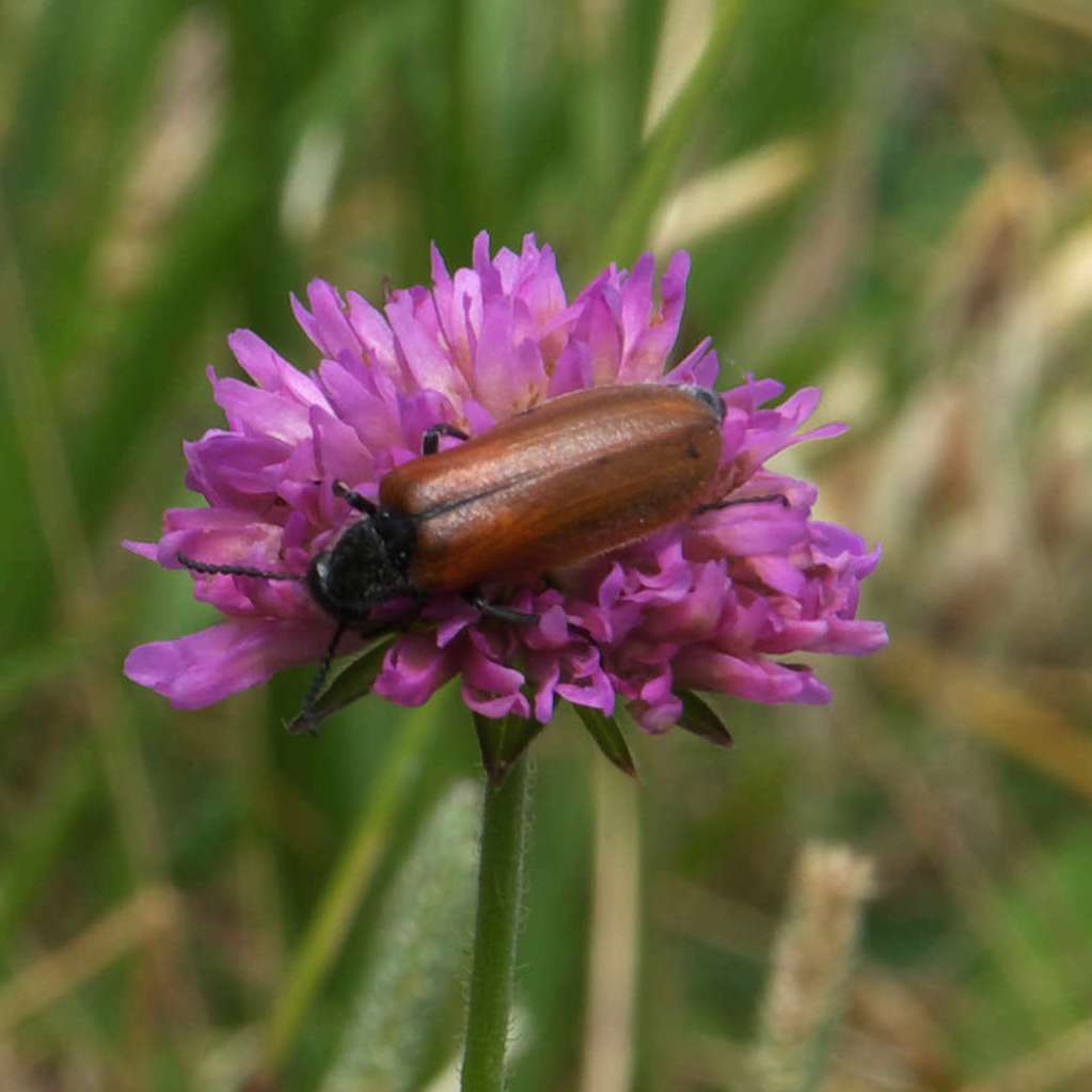 ... potremmo aggiungere che il fiore non è un trifoglio bensì una Dipsacacea, sembra Scabiosa o Knautia, fiori molto appetiti dai Meloidi...