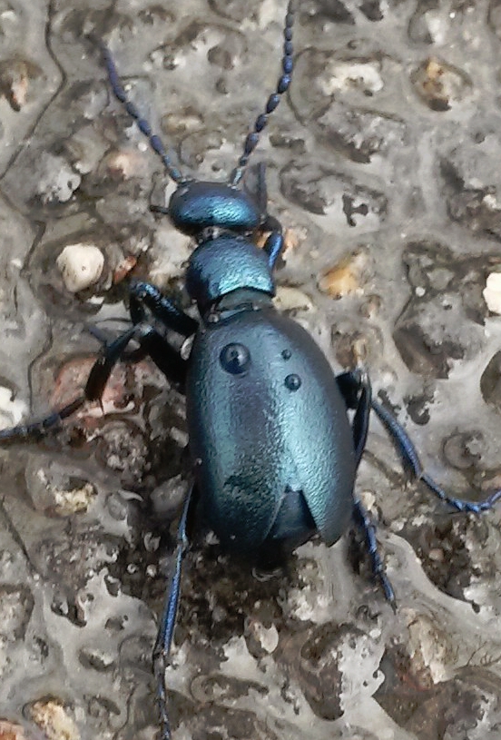 Ciao ho visto questo bellissimo insetto oggi camminando sul asfalto nel parco. Potrebbe essere un "Meloe violaceus" ? (non quadra esattamente con le foto che ho visto in internet.)