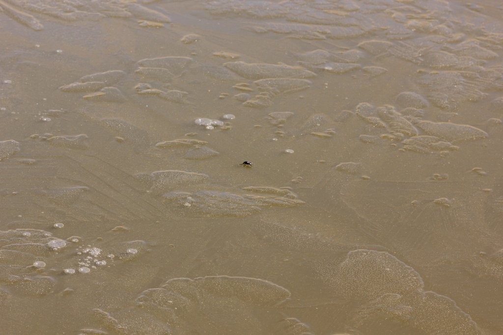 Mentre cercavo di vedere qualche Dytiscidae sotto il ghiaccio in cerca di bolle d'aria intrappolate, e vedevo solo notonette, ho scorto qualcosa camminare lentamente sulla superficie del ghiaccio, a più di 5 m dalla riva.