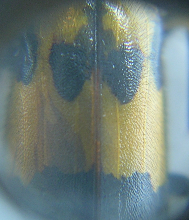 [...]Oppure: per distingure il sottogenere tipico di Mylabris (es. in Italia variabilis, quadripunctata) rispetto al sottogenere Micrabris (es. in Italia pusilla, flexuosa, obsoleta, connata), guarda il mesosterno; se nella sua porzione modificata anteriore (il cosidetto scutum) c'è un'area pilifera ben visibile verso dietro, questo è il sottogenere nominale.