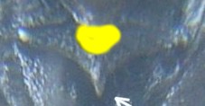 Ciao Maura, ho controllato la Fauna d'Italia per scrupolo, e mi sento di confermare quanto già ipotizzato da Maurizio (Julodis): Mylabris (Mylabris) variabilis (Pallas, 1781). Ti dico cosa depone a favore di variabilis e contro pusilla: Intanto le dimensioni: le Micrabris italiane sono proprio piccole e la pusilla (secondo la Fauna d'Italia) misura 7-11 mm, ben al di sotto del tuo esemplare. Ma andiamo avanti col famigerato mesosterno, o meglio con la conformazione dello scutum mediano che in Mylabris (Mylabris) presenta un'area posteriore mediana punteggiata e pelosa, è liscio in Mylabris (Micrabris). Intanto c'è da dire che bisognerebbe osservare il carattere a maggiore ingrandimento e poi forse schermando un po' di più la luce. Forse tu ti sei basato solo sul fatto che non sembra avere apparentemente una pubescenza però secondo me lo scutum è punteggiato. Ti allego una foto ritoccata che è venuta una mezza ciofeca che indica in giallo dove si trova lo scutum del mesosterno. Non ultimo il disegno elitrale che è proprio quello tipico di variabilis e non corrisponde a nessuna forma di pusilla, in particolare la banda nera submediana non è mai così spessa in pusilla, specialmente vicino alla sutura. Per tutto ciò, e dall'esclusione di altre specie di Mylabris (s.str.) che hanno una diversa conformazione del mesosterno (ma sempre nell'attesa della conferma di Marco Bologna) direi che si tratta di Mylabris (Mylabris) variabilis (Pallas, 1781). |