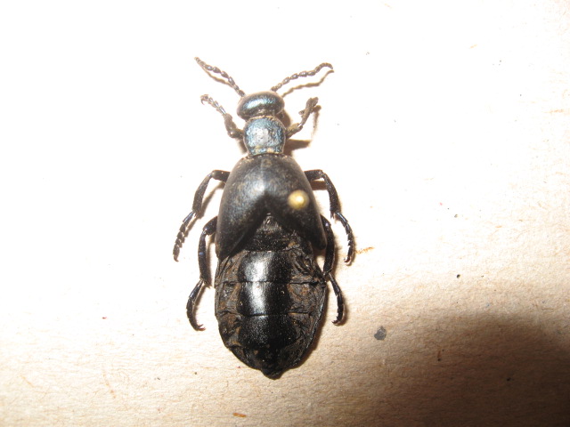 Non volevo sbilanciarmi, sperando in un intervento di Marco Bologna, ma visto che non si fa vivo, provo a dire la mia. Anche se probabilmente sbaglierò, ho la sensazione che questo possa essere Meloe (Meloe) aegyptius Brandt & Erichson, 1832, anche se non ho mai visto dal vero questa specie. Purtroppo le varie specie del sottogenere Meloe (di cui 3 presenti in Sicilia) differiscono solo per pochi particolari. M. violaceus lo riconosco per la particolare forma della base del protorace, ma da questa foto non si capisce bene come sia(almeno, io non lo capisco bene). Sembrerebbe più simile a quella di proscarabaeus e aegyptius. Si potrebbe avere una foto più dettagliata, magari un particolare di protorace e dintorni?