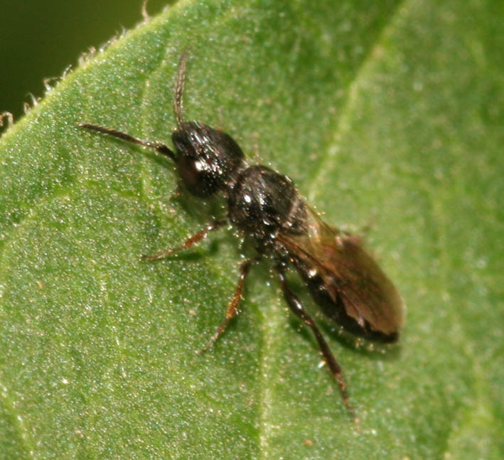 Fino a lunedì non posso controllare, ma per me questo è uno Proctotrupoideo Scelionide e mi ricorda anche una specie facilmente determinabile che ho trovato all'Asinara: Sparasion bicoronatus Kieffer, 1906. Cerco di ripescare l'esemplare dell'Asinara per confrontarlo.
