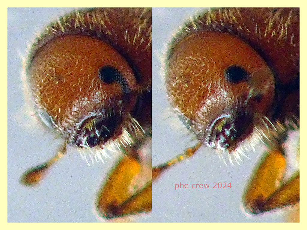 ...sembrerebbe proprio Dactylotrypes longicollis, uno Scolytinae delle Canarie e Madeira che si sviluppa nei semi delle palme Dracaena draco e Phoenix canariensis e probabilmente diffuso (e in alcune parti naturalizzato) da infiorescenze usate come ornamento proprio di queste Palme. Si e' poi ampliato in altre parti del mondo sviluppandosi in semi di Palme affini come Trithrinax sp., Butia sp., Rhapis sp. e Chamaerops sp.. E' stato trovato anche in Italia gia' da molto tempo...1992 o giu' di li, letto in un documento che non trovo piu' :oooner: Anche da me ci sono alcune specie di queste Palme, ma sono distanti e non riesco a capire come sia arrivato nel recipiente pieno d' acqua con il radicante e alcuni rametti di Mirto :? ....probabilmente volando...Questo misura 2,1 mm. e credo sia una femmina. Posto alcune (indecenti) foto dell' habitus delle spine delle zampe anteriori che nelle chiavi cita essere 8-9 e il flagello da 4.