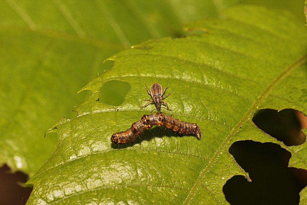 Un Curculionidae che fissa un bruco .... ma non sono soli!