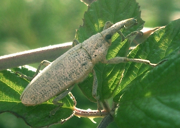 Avrei pensato ad un Lixus pulverulentus, ma non ne ho mai visti di questo colore. La copertura polverosa era infatti grigio chiaro, quasi bianco (purtroppo le foto in natura hanno i colori un po' falsati dalla luce del tramonto).
