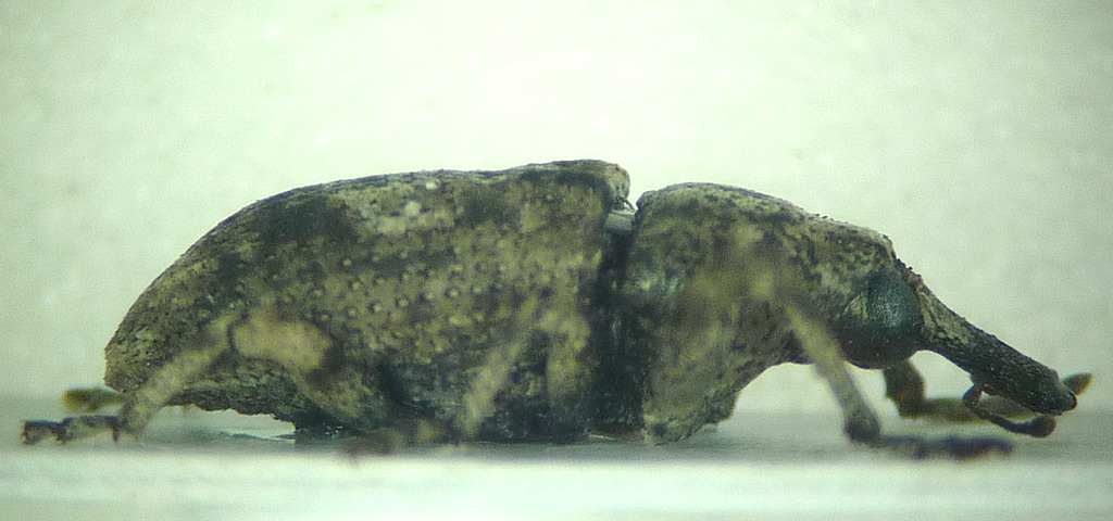 Trovato sulle ombrellifere dei campi aridi tra i calanchi di Canossa, il rostro e la testa sono completamente aderenti al "petto", 8 mm.