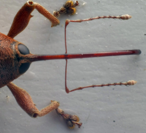 Ciao Krep, ho guardato al microscopio il curculio. 1. il "brush" sembra esservi ma non è molto evidente. 2. l' ultimo segmento dell' antenne è più lungo che largo. Non avendo un curculio da poter comparare, credo che questo sia glandium.