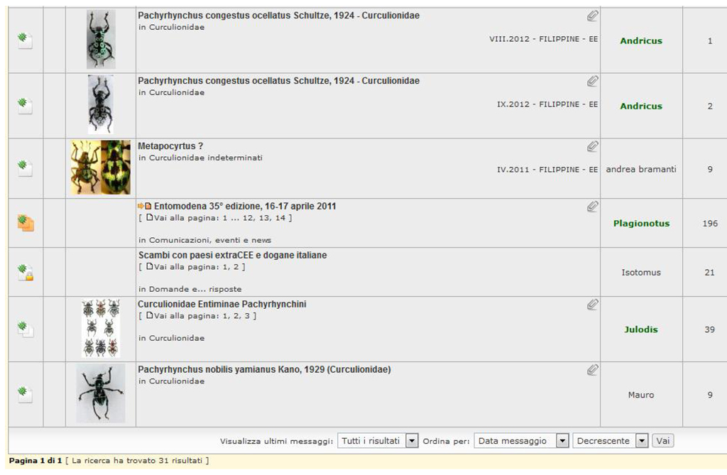 comunque con la funzione "cerca" continua a non comparire: digitando Pachyrhynchus compaiono altri 7 post, ma non questo. Eppure è scritto giusto, non capisco cosa impedisca al motore di trovarlo.