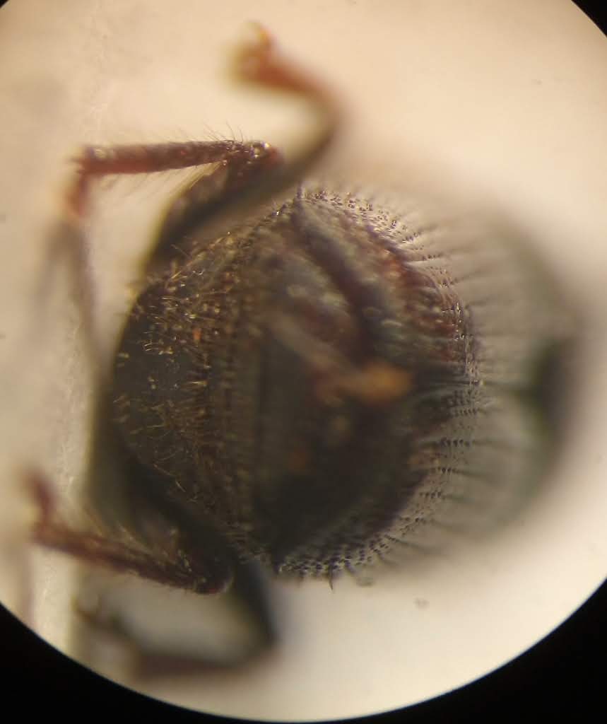 -alla margine posteriore del ultimo sternito del abdomen, c'è una frangia di setole dorate divisata in quattro ciuffi