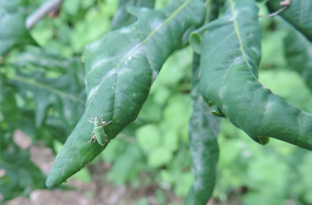 Fotografato su un filare di alberi (piuttosto malridotti) ai margini di in una zona coltivata presso Settimo Torinese, a circa 200 metri di quota. Potrebbe essere Polydrusus formosus? Sono loro i responsabili della forma delle foglie?