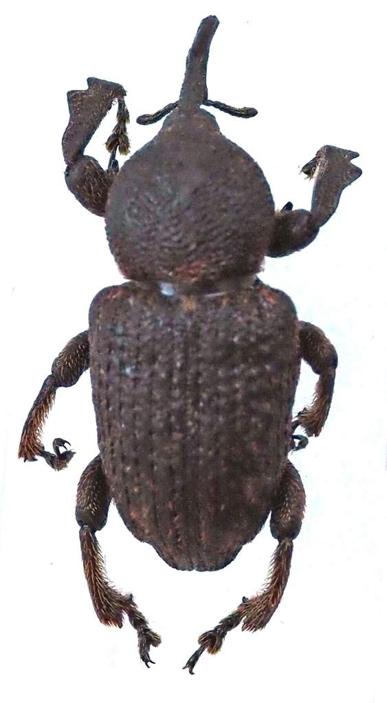 Questa Curculionidae ha la strana caratteristica che le sue protibie sono così appiattite da sembrare essere passate sotto un rullo compressore.