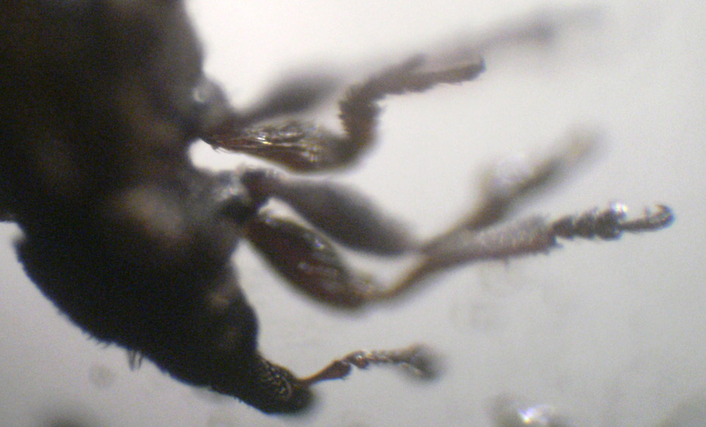 Purtroppo non so quali caratteri siano utili nella identificazione dei curculionidi… Ho solo un'altra foto dove si vede qualcosa delle zampe anteriori, se può essere utile.