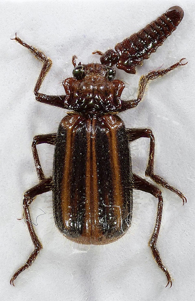 Aprofittando di alcune foto fatte ai miei esemplari di Paussinae gabonesi, le metto qui su FEI (è un bel pezzo che non inserisco esemplari ).Dunque, all'ultima borsa di Praga ho conosciuto Michal Bednařík il quale mi ha riferito di essere anche uno studioso di Paussinae mondiali, così mi aveva chiesto di mandargli le foto degli esemplari presi in Gabon. Questo lo ha determinato come Heteropaussus dohrni (RITSEMA, 1875) or lujae, con tutte le riserve del caso in quanto mi ha riferito che non è facile determinarli solo da foto. mm. 7,8 - antenne escluse |