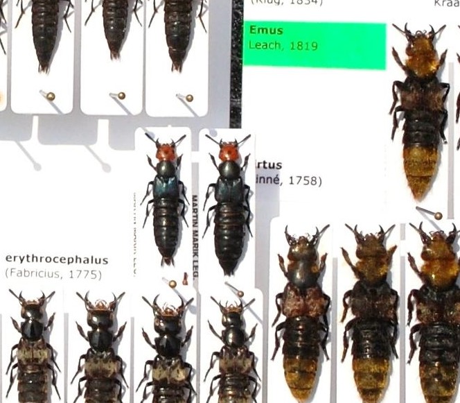 Effettivamente specie molto bella e incontro interessante (grandi foto). In Italia è diffuso dalla Liguria e da Bologna in giù un po ovunque, ma sempre raro e isolato. Incontro poco frequente anche Emus hirtus (anche se in alcune valli delle Alpi centrali è abbastanza comune), mentre il Creophilus in realtà è una specie comunissima nel suo ambiente: se avete lo stomaco di rivoltare un animale morto non troppo piccolo, fra aprile e ottobre, è quesi impossibile non trovarlo in grande numero.